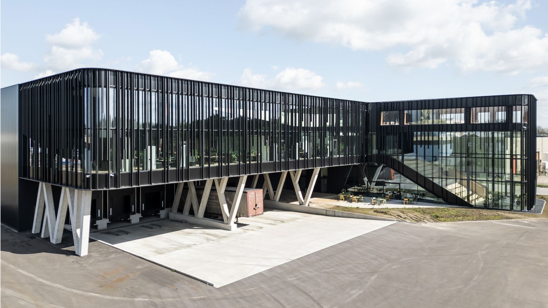 All Sport est une entreprise familiale belge active dans la distribution de marques de sport. Pour la construction d'un centre de distribution moderne et durable, de bureaux reliés et d'un plan directeur offrant des possibilités d'expansion, All Sport a fait appel au bureau d'architecture wilma wastiau dont la devise est 'We funk industrial architecture'. L'objectif était de créer un lieu de travail agréable, capable d'inspirer et de motiver les employés et les clients : 'Un bâtiment qui respire le sport'.