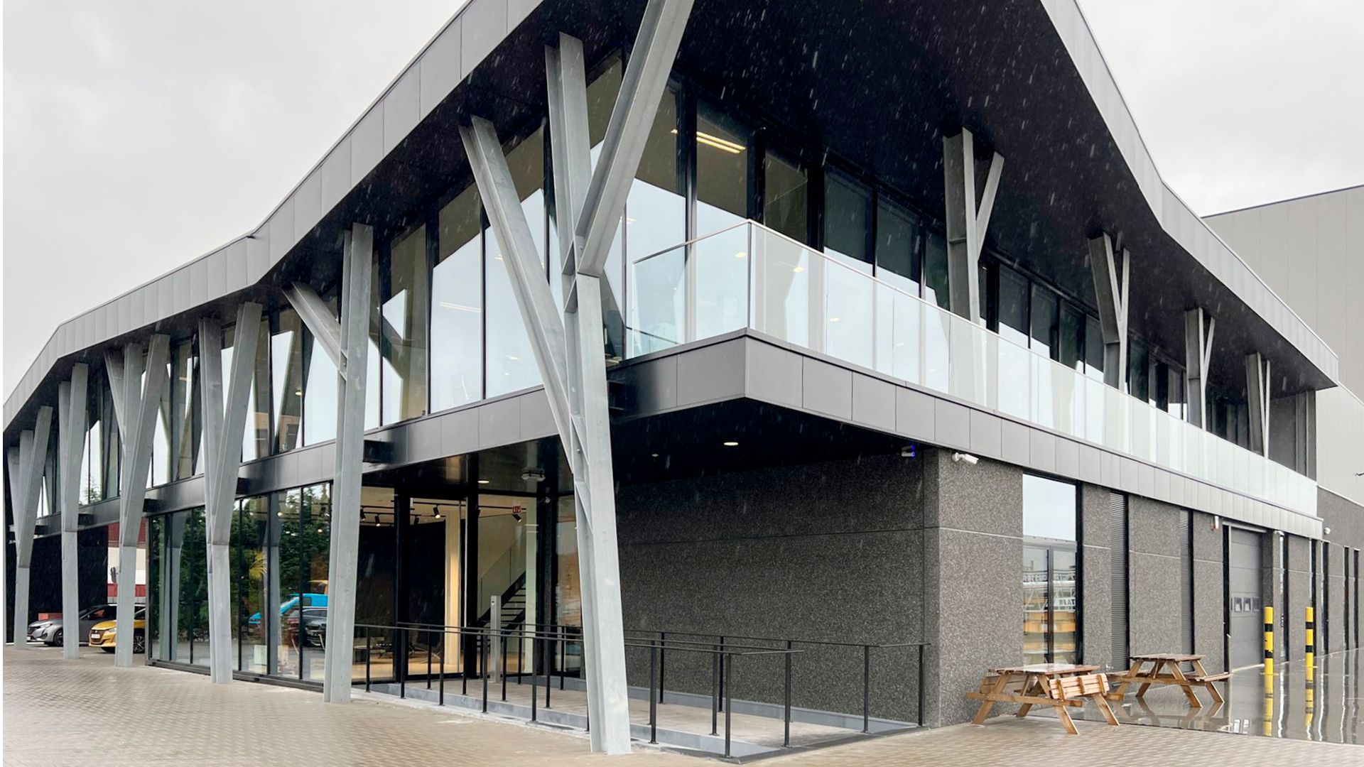 Les bureaux devaient suivre un concept architectural avec des colonnes extérieures inclinées conçues comme une structure arborescente de soutien. En outre, ils devaient être découplés thermiquement, bien qu'une grande partie des efforts doivent être transférée. En utilisant des solutions spécifiques et une variété de finitions, l'acier a parfaitement résolu ce problème.