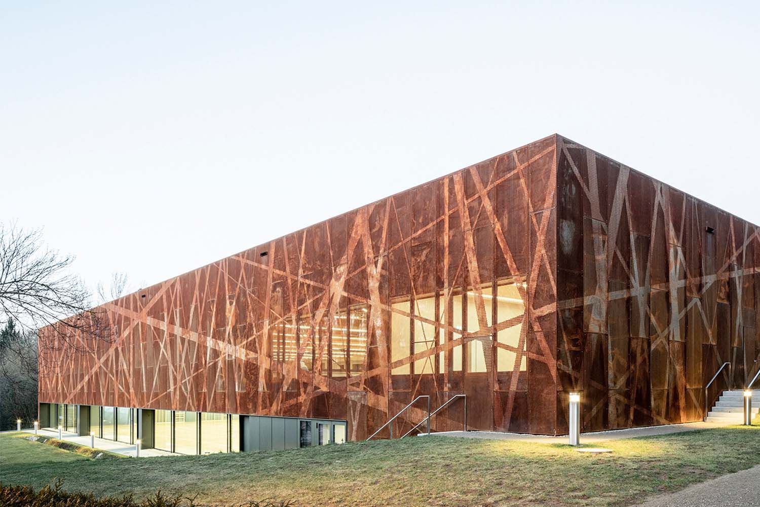 Il y a un an était inauguré à Bridel (G-D du Luxembourg) un nouveau hall sportif multifonctionnel de 3 000 m2 dont la façade, composée de panneaux en acier auto-patinable (corten) perforés suivant un motif non répétitif, évoque à la fois l’environnement boisé et les vitraux de l’église voisine. Une esthétique naturelle et brute qui vient compléter un design sobre et un concept technique durable (« maison passive »), pour un bâtiment fonctionnel qui n’est pas si introverti qu’il n’y paraît…